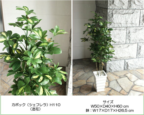 地域により 送料別途かかります 北海道、沖縄 地区 送料別途 + 2,500円 東北(青森、岩手、秋田、宮城、山形、福島) 送料別途 + 1,000円 ■カポック(シェフレラ)110cm 造花 人工観葉植物 ■CT触媒加工 ■材料 ポリエステル/ポリエチレン/ビニール樹脂コート 器・・・陶器 ■サイズ W45×D45×H110 cm 鉢 φ17×H26.5 cm ※商品のサイズは多少異なることがございます。