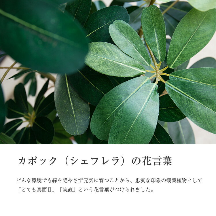 商品名 カポックツリー[SC(CT)触媒加工済み] サイズ 本体/高さ:約160cm鉢/材質:陶器、寸法:上辺28cm・下辺21cm・高さ41cm(他の鉢をご希望の方は当店までご連絡下さい) 生産国 日本 特徴 ナチュラルな雰囲気で人気のカポックです。