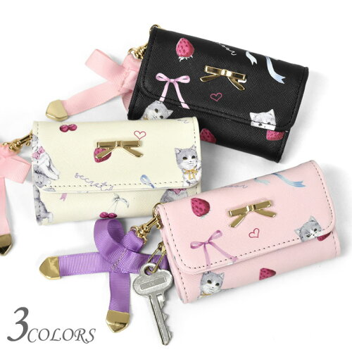 立体的なリボンプレートやリボンチャームもポイント! ■ 開け口にはスナップボタン付きで、鍵はキーフックとキーリングの5箇所につけることができます◎ ■ サイズ(閉じた状態)・・・たて約6.5cm×よこ約10.5cm×厚み約3cm ※多少の誤差はご了承ください ■ 商品の性質上、柄の位置やデザインが若干違う場合がありますのでご了承ください。
