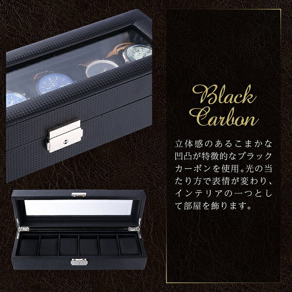 カーボン 時計ケース 鍵付き 腕時計ケース 6本 収納 プレゼント 収納ケース 腕時計 ケース 腕時計ボックス 収納ケース 収納 ケース インテリア コレクション ウォッチケース ボックス ディスプレイ 展示 カーボンレザー ビジネス カシオ シチズン Gショック おしゃれ オシャレ ギフト 自分用 母の日 父の日 バレンタインデー クリスマス 誕生日 卒業 入学 進学 新社会人 新生活 新卒 5本以上 メーカー希望小売価格はメーカーサイトに基づいて掲載しています細部のパーツに到るまで徹底的にこだわった腕時計ケースは、見る者を魅了します。